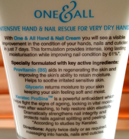 All three creams are dermatologically tested, smell the same, contain glycerin, and Keretec ProSina - never heard of this particular ingredient before, but it's touted as "...a powerful antioxidant which helps fight the signs of ageing, locking in vital moisture, even after washing, to help restore skin elasticity. Dramatically strengthens nail integrity and protects nails against splitting and peeling." Sounds pretty good huh? Well I've found it to be ALL TRUE!
